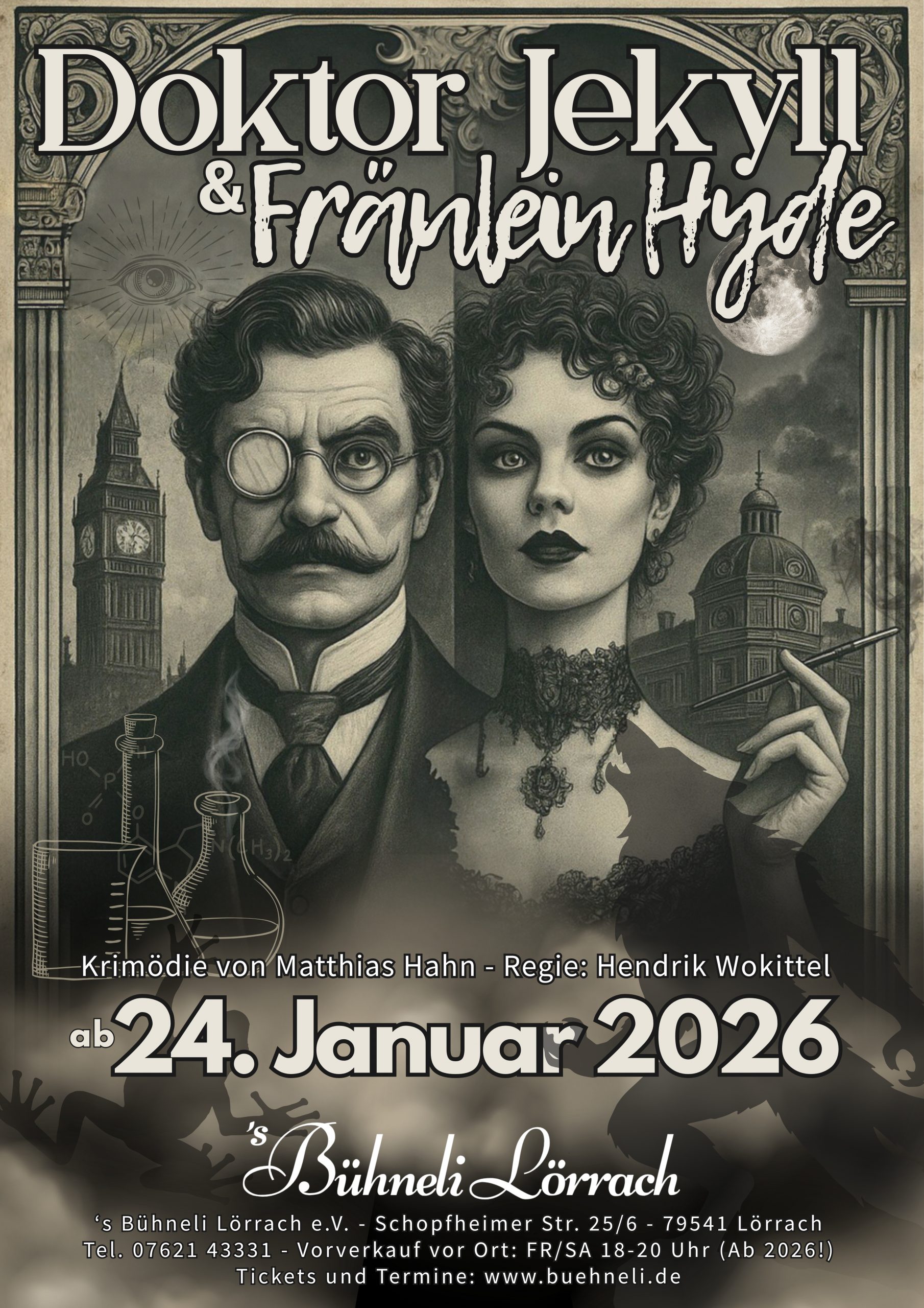 Am 24. Januar 2026 feiern wir ein Doppel-Event der Extraklasse: Die festliche Eröffnung unseres neuen Theaters und die mit Spannung erwartete Premiere unseres Stücks „Dr. Jekyll und Fräulein Hyde“!